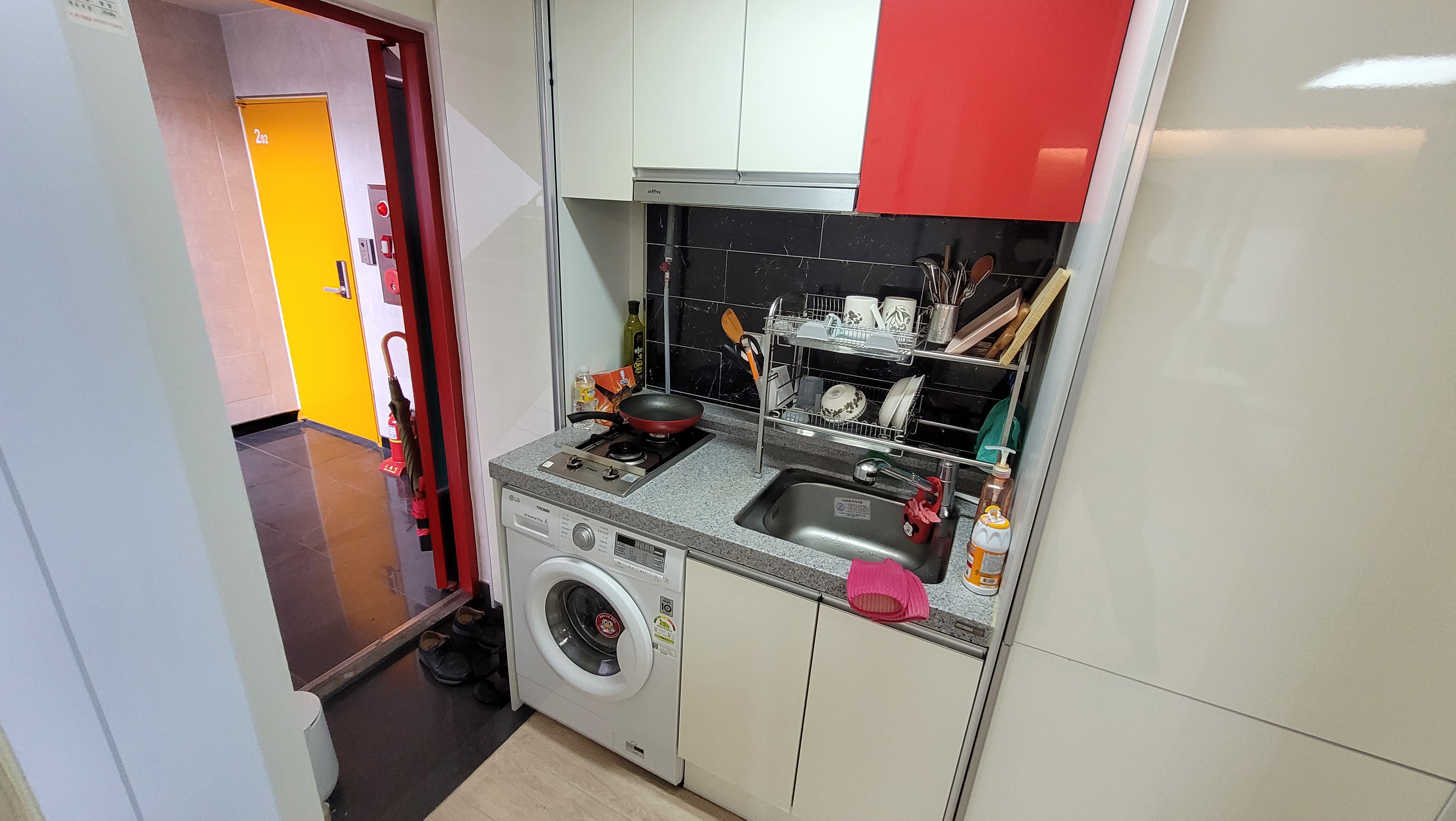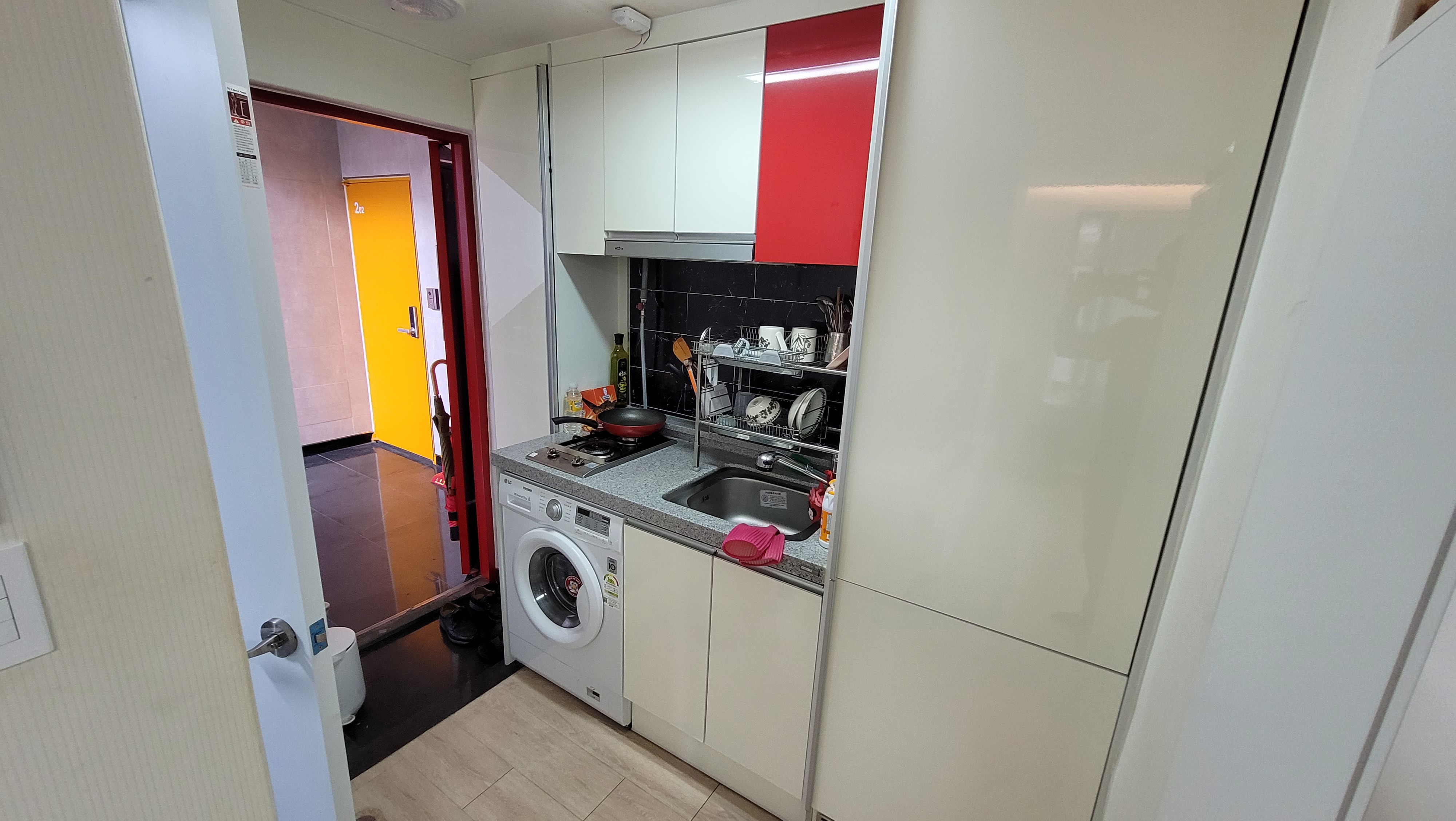 냉장고, 세탁기, 싱크대, 가스레인지, 벽결이에어콘